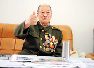 老人说,典礼当天,官兵们的早点是高粱米煮白薯和咸菜,“那年月,那条件,没啥好吃的,可心气高啊,那感觉比现在吃山珍海味都香。”