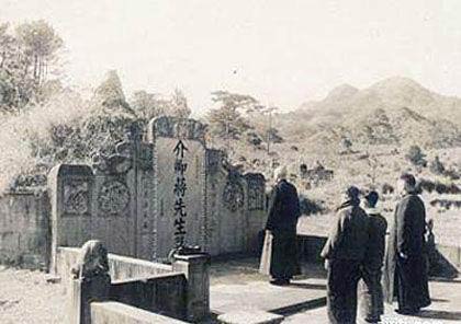 儿媳、孙子都来了以后,蒋介石领着他们一同来到苍松环绕的蒋母墓前。