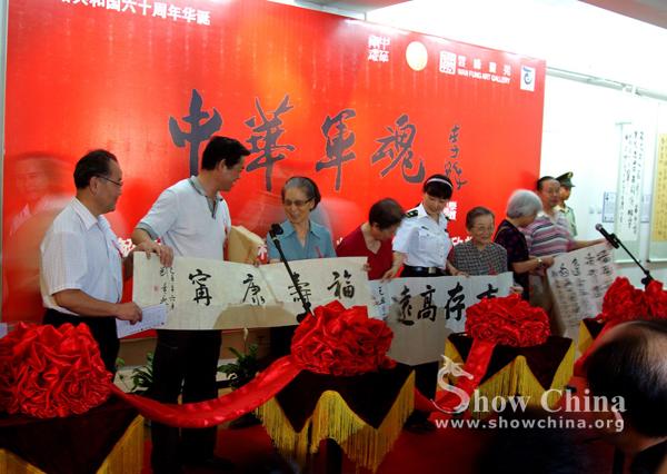 “中华军魂——解放军军事家和开国上将名诗名句书法欣赏展”首展开幕式暨纪念酒会,8月15日下午在北京观音堂文化大道云峰画苑美术馆隆重举行,一百多名老将军、革命先烈和开国将帅后代、军旅书法家和社会各界代表以及学生代表参加。