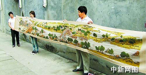 中新网新乡8月17日电 (记者 侯伟胜) 河南省获嘉县的退休女工张新珍耗费一年半的时间,用78种颜色、大约120万根彩线,绣了一幅与原图大小一样的《清明上河图》。目前,这张特殊的《清明上河图》已经完工。