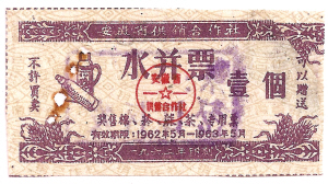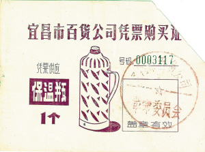 如果非得要问老康“为什么要收藏暖瓶”,那么他就会告诉你这或许跟他父亲有些关系。康树森的父亲当年从事着一份让现在的年轻人难以理解的工作:收废玻璃瓶子。那时候社会生产资源很紧张,废玻璃瓶子被回收后会融掉做成新的玻璃瓶子,还有的完好的瓶子可以被当做二手物品二次出售,进入新的家庭。而当时这些瓶子里最高级最时尚的东西,就是暖水瓶了。你信吗,有一段时期,买暖水瓶是要凭票的,老康手里还有两张当年的“暖瓶票”呢。在老康很小的时候,就对家里的瓶瓶罐罐产生了兴趣,据他回忆,当时那些“破瓶子”里,不乏珍贵的国外“料器”,当时谁也不明白,最后父亲退休的时候,嫌放家里占地方,都扔了。就因为有两个老暖瓶,似乎还有点实用价值,当时没舍得扔,就放在家门口的一个放破烂的破筐里,直到老康后来迷上收藏,重新发现它们的价值,才把它们“抢救”出来。这两只暖瓶就是现在他藏品中年份最老的两只,其中一只的竹提手上还有火烧过的黑痕,“那是过年时放鞭炮炸的。”老康很遗憾地说。