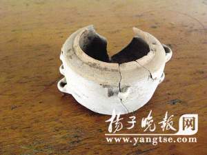 记者看到古墓中还出土了一件十分奇怪的直腹小罐,问考古人员,人人都说从未见过。还出土了一批青瓷扁壶、青瓷碗、盆,以及陶灶、磨盘、陶猪等生活陪葬品。另外,还出土了10多枚汉代的五铢铜钱。由于没有发现墓志或地券的相关文字遗迹,墓主的身份无法弄清楚。