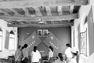 与北京的“人民大会堂”截然不同的是这里极其简朴的环境。八月初的一天,前来参观的人们排着队有秩序地瞻仰着这里的一切。抚摸着一排排简陋的桌椅,每一位观众心头都难掩无限感慨。