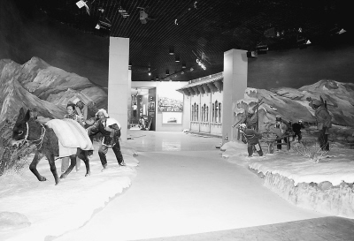 新馆里,50米长的“延安新市场一条街”,是为表现延安经济建设成就而专门设计的大型场景。1938年11月20日,日本飞机开始轰炸延安。为方便群众生活、促进边区经济发展,1939年2月,边区政府在延安西山脚下修建了新市场,成为当时延安的商业、贸易和金融中心。