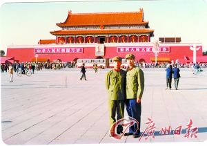 “我们哥俩儿几乎是同步通过了天安门,这在全国参加国庆阅兵的官兵中都是罕见的。”52岁的李鸣捷如今是中国银行成都高新技术产业开发区支行行长。1984年10月1日上午10时许,展示中国改革开放和现代化建设巨大成就的国庆35周年大阅兵盛典上,李鸣捷在排序第一的军事学院方队,铿锵正步走过金水桥旁。此时,弟弟李明伟和战友驾驶的机群,也呼啸长空,在天安门上空中舞出四色彩烟,共庆盛典。退伍多年,两兄弟很少主动提及这段经历,但当年受阅的那身军装却一直珍藏。