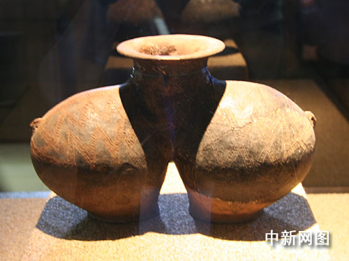 新石器时代晚期的双体陶罐,距今5300-4200年,于昌都卡若遗址出土。