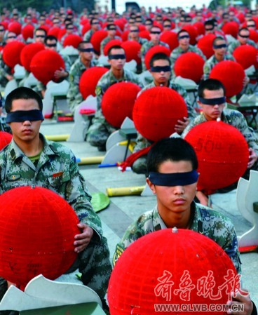 位于通州的星湖园训练基地,光立方表演团队的所有演员和工作人员都聚集在这里。“光立方所有的演职人员有5000多人,光上场表演的演员就有4028名。” 作为训练基地具体负责导演之一的于克表示,为了保证演出,这5000多人中还有256名候补演员。参加演出的演员都是来自部队的士兵,由于规模空前,这支部队的驾驶员、炊事员都上阵了。