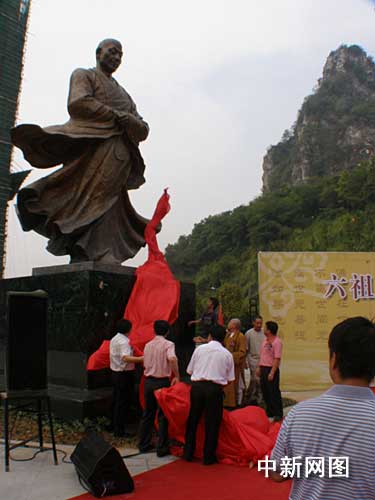 中新网韶关9月21日电(冯昶 袁少洪 邓国柱)中国佛教禅宗六祖慧能大师铜像,20日在广东韶关市曲江区内离千年古刹南华禅寺约六公里的马鞍山下落成并揭幕。