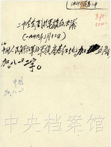 1948年2月,中共中央发出通知,向各中央局、中央分局、各军区、各野战军前委征求中国人民解放军军旗、军徽的具体意见。