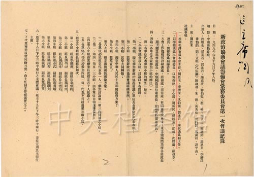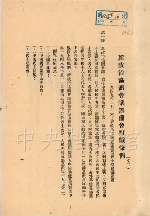 1949年6月15日至19日,新政治协商会议筹备会第一次全体会议在北平召开。参加这次会议的包括中国共产党和各民主党派、无党派民主人士、各人民团体、国内少数民族、海外华侨等 23个单位, 134人。