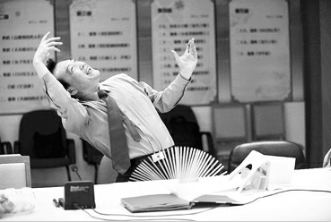 会笑了还不够,张继钢盯着邰丽华,还觉得不对头。终于发现:她的眼神太实。张继钢绞尽脑汁,调整了一遍又一遍。终于,当她的视线落在地面上某个点上的时候,张继钢找到了他想要的眼神。他在舞台上量了那个距离:七米。