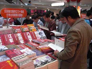 北京图书大厦一层开辟了百余平方米的大型展区,并推出“庆祝新中国成立60周年优秀出版物联合展销”活动,其中包括共和国开国元勋的自传、《毛泽东诗词辨析》等爱国主义图书,深受读者青睐。这里的工作人员说,目前图书大厦有近千种红色图书,涉及政治、文学、历史等多个方面,很受读者喜爱。为保证读者购书需要,他们时时查货、及时补充货源。在中关村图书大厦,一位正在挑选书籍的大学生对记者说:“我打算利用国庆长假,认真选读几本讲述新中国历史的图书。新中国成长的历史记忆不应该在我们这一代被遗忘,相信阅读红色经典会让我的这个假期过得更加有意义。”
