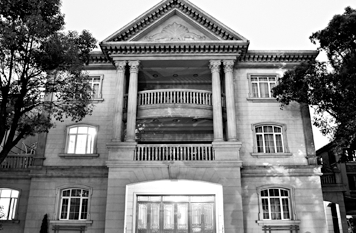 站在前花园青绿的草皮上,可以闻着空气中飘荡的金桂花香。这幢3层楼高、白色的欧式洋房具有明显的巴洛克风格。房间为对称设计,一楼中间是客厅,6扇落地铜质大门显得房屋既古典又气派;二三楼中间是两个超大的弧形阳台,镶嵌其间的是石柱式栏杆,左右还各竖立有两根罗马式圆柱,带格子窗户的房间对称位于洋房的两端,顶部则是一个三角雕花的屋顶。外墙贴的白色石质墙面砖,让整座洋房看上去更加典雅。