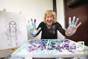 五十出头的伊加耶夫弗拉吉米尔是俄罗斯艺术家创意联盟成员,他对昆剧院的建筑产生了浓厚的兴趣。擅长手指作画的佐托娃柳德米拉,则被院内墙上悬挂的精彩剧照深深吸引,情不自禁地画了起来。“我认为这是世界上独一无二的美。”她笑着说。热情的她更是现场表演起了自己的“绝活”——手指画,双手沾上水,分别涂抹上各种颜料,一转眼,几朵妖艳的紫色百合已经跃然纸上。她告诉记者,南京的景色实在太美了,城墙、特色建筑群、灯光河流……晚上躺在床上,都无法入睡,前天还半夜起来创作。“手指画起源于中国的唐朝时期,现在听着昆曲,我觉得自己上辈子可能是中国人!”