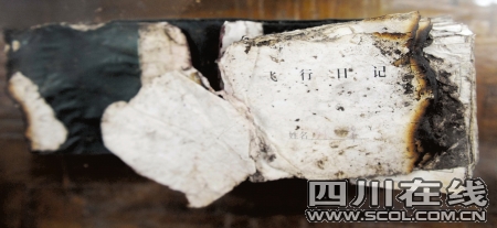 经过三天的连夜赶路,探险队员在飞机残骸中找出了邱光华的飞行日记。手掌大小的本子,绿皮,已经被火烧得有些破损,封面签名已被雨水侵蚀,只能看见模糊字迹。樊建川说,抗震救灾收集文物就是跟时间赛跑,要是再晚点,这本日记都不知会埋在哪里。(华西都市报 记者 陶玲)