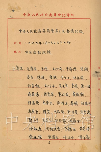 1. 1949年10月19日,中央人民政府委员会第三次会议记录 (1)