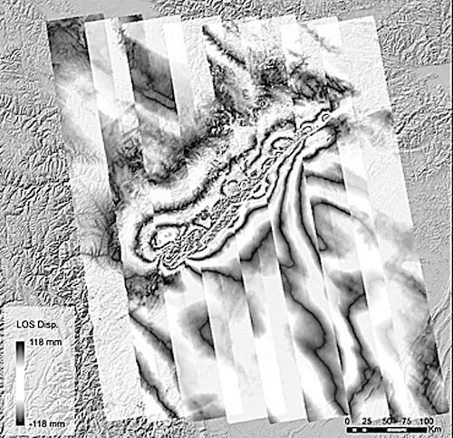 根据卫星数据,研究人员还计算了整个震区在地震前后的地表变化情况,并分析了造成这一变化的地壳断层运动情况。参与研究的中国地震局地质研究所的孙建宝博士在接受记者采访时表示:“这是人们首次对一场如此巨大地震所造成的地表形变进行全面和精确地观测。”