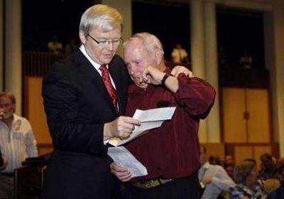 11月16日,澳大利亚总理陆克文和反对党领导人图恩布尔分别在联邦议会向“被遗忘的澳大利亚人”作出道歉。陆克文表示,“你们从此将成为‘被记住的澳大利亚人’”。图恩布尔也表示,“我们尊敬你们,相信你们,爱护你们”。然而,近千人的会场在片时的欢呼之后,很快又陷入了沉寂,呜咽啜泣声四起,有人大喊要赔偿,