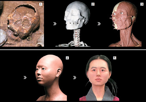 雕刻家兼美术解剖学专家金炳夏(音)、在电影《蝙蝠》和《母亲》中负责化妆的CELL小组参与了人体复原的模型工作。他们将皮肤显露的淡蓝血管、粗活磨损的手指皮肤等都精细地表现出来。此外,还复制了在骨骼的左侧脸颊附近发现的金铜耳环,挂在少女的左耳上。