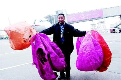 “双流机场以前也飘来过庆贺用的大气球、鸽子满场飞的情况,但孔明灯光临还是头一回,预计孔明灯是随着气流飘到本场的。”在双流机场机坪边缘,胡强展开摊在地上的孔明灯,这7只孔明灯足有一米高,直径近一米。“像这么大的一只孔明灯对于飞行中的航班来说,简直就是布在天空中的地雷,稍不注意便要机毁人亡。”