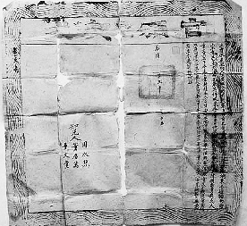 这份官颁契式为麻纸印制,42厘米见方,四周为3厘米宽的蓝色水纹图,中间上方从右向左印有4厘米见方蓝字“官颁契式”字样。契约内容为:立卖永远地约人董庆旺,今因用钱紧急,将自己原置到边外(长城外)石峁濠地叁垧,东至边墙,南面上至卖主,下至天沟,西至张万科地界,北至董吉川地界,四至分明,土木石相连,情愿出卖与民人董文其名下,永远管业耕种,同人言明,受过永地价银贰拾肆两伍钱整,其银当交不欠,随地鹅鸭银每垧贰分伍厘整,此银从丰豫都伍甲李魁名下开除,由本都十甲董永川名下入册完纳,恐口无凭,专立永远契约为证。光绪二十二年十月十五。知见人:周永点、董庆万、董文贵。契式印有篆字河曲县印,右上角印有“第二区验讫”印和刘福同私印。此契为研究清代官方规范民间卖地行为和当时民众组织划分及卖地税收等方面提供了实物资料。(郝文俊 李文芳)