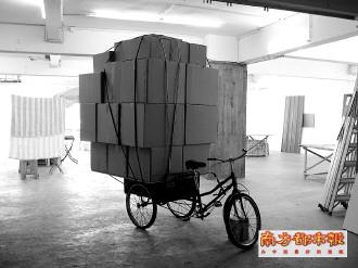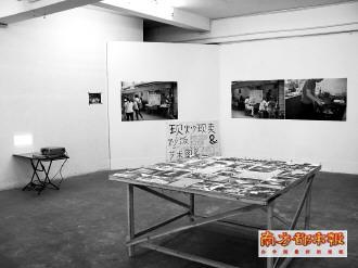 维他命空间的网站很简单,主页上只有一粒小小的维他命药丸,但它所在的位置却很复杂,足以让值勤的保安都彻底晕菜,广州赤岗西路横一街29号301,记者拿着地址一边走一边问,终于在穿越一个满是水果、蔬菜、廉价衣服鞋袜的市场后,到达了传说中那个黑压压、人头攒动的网吧,再从侧翼包抄,走楼梯上三楼。上楼梯的过程中,你会与一些发人深省的字句不期而遇,“什么是物质?什么是空间?”中英文对照,杂乱而有序地分布在楼梯上、墙壁上。空间门口是一台巨大的装置作品,有点像菜市场里猪肉档上方的吊扇,只不过更加巨大更加美观,吊扇下面是彩色的飘带,这件装置作品还有一个直白的名字叫做《苍蝇免入》,那些不停旋转的彩带在艺术家们看来似乎是一种优美的旋律。目前正在举办的展览名字叫做《按日计》。