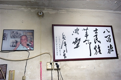 王家将灵堂设在老人卧室之中,不大的卧室里摆放着网友送来的花圈,挽联上写着“沉痛悼念抗日英雄王文川先生”。老人的遗像安放在灵堂正中,遗像中的老人戴着眼镜神态安详,遗像前摆放着老人生前佩戴的手表和一把上海牌口琴。