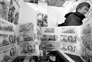 记者走访发现,在马甸邮币卡市场内,成套出售的朝鲜纪念钞珍藏册售价在100元以上,比原来上涨了25%。