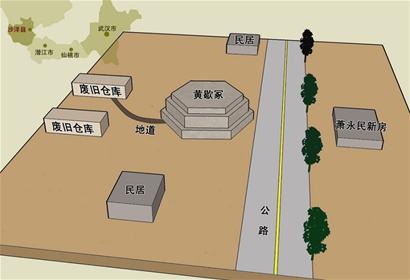 与黄歇冢隔公路相对的地方,是萧永明家即将完工的新房。在黄歇冢的另一边,原属供销社的两幢仓库,萧永明买下来,并拆掉它们作为新房的材料。其中一幢拆了一半,另一幢已经拆完,地基有大片取土痕迹,距黄歇冢约30米。