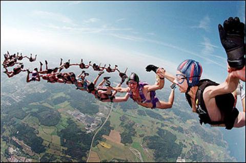 21名瑞典“哥特堡跳伞俱乐部”的人,在2000公尺的高空,从飞机上一跃而下,写下这项新纪录。