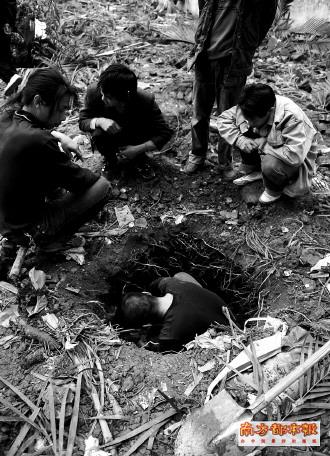 记者昨日走访发现,宝盛大街尽头的街心花园,上千平米的绿树花草已被拆平,连片的烂泥地上却多出了四五个大地洞,约半米深,能容下一个人。各个洞口前都围着四五个外来的年轻人,在烂泥地上敲敲打打,捣鼓出零零碎碎的瓷器和玉块。