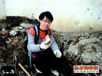 本报曾报道,逢源路8条老街开拆,引来收买佬挖地掘宝。记者昨日走访,连片开挖的街心花园内多了张年轻面孔:80后的林震宇也赶来“凑热闹”,这位20岁的大男生是江门新会的“考古新秀”。不过,大男生四处挖掘,集纳的不是玉,却是不卖钱的“破瓷烂瓦”。
