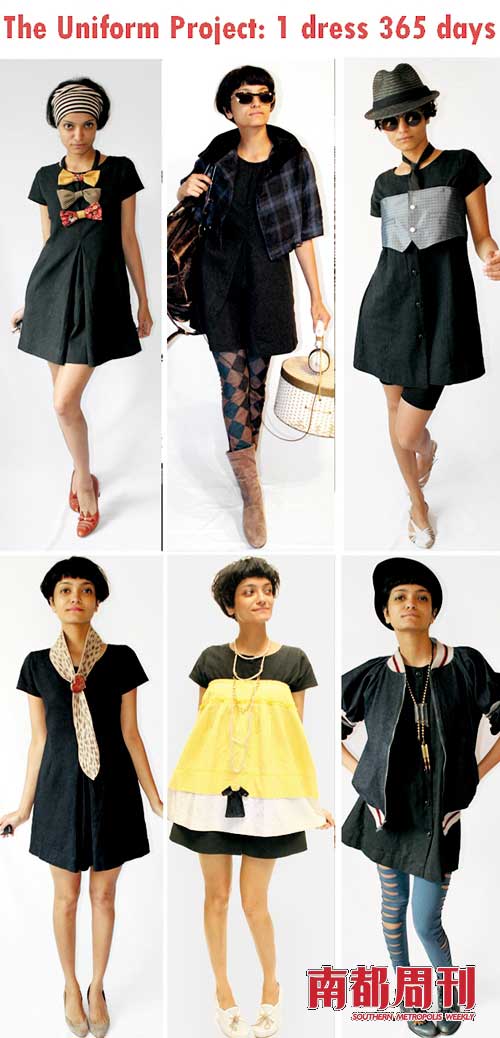 不过帅哥美女看多了,大家又有些审美疲劳了。因此,后来的网模想要在网店中立足,拥有一席之地,就要有一些不一样的地方。最近一个叫Sheena Matheiken的印度女人就另辟蹊径,发起了一个所谓制服计划的blog。她连续365天穿同一件衣服,只不过每天换一些小花样,比如今天加一顶小红帽,缠一条围巾,走妩媚路线;明天则在外面套一件长衫,换上运动鞋,整个人休闲到不行,诸如此类。Sheena Matheiken还声称所有收入都是义卖为印度贫苦儿童筹备基金