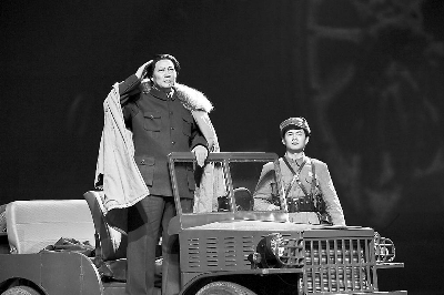 《毛泽东在西柏坡的遐想》是继《突围》、《圣地之光》之后,总政话剧团的又一部政论剧尝试。这出戏,以它有别于传统戏剧创作规范的主题、人物、情节和结构处理,创立了一种新的美学原则,让人们领略了它那宏大叙事的魅力。在这部戏中,主题的多义性和公开性取代了传统戏剧的单一性和隐蔽性,人物形象的共性和代表性取代了个性,相应的情节设计中不再是情感关系或个体命运,填补它们的是国家意志、政治关系和群体命运。而这些情节的连接,也不再呈现为那种因果相连、层层递进式的单线形状,更像是一个并列、开放、发散着的网络。应该说,这种戏剧体裁与我国60年大庆的时代需要是相匹配的。