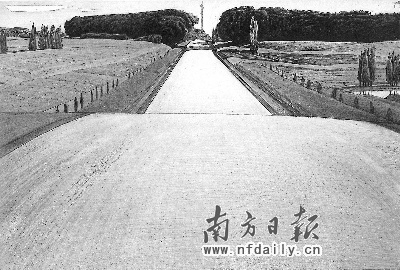 当所有的画家追求描摹大山大川,流行画美人美景时,刘其敏选择了截然不同的创作路径。他的笔下是一望无垠的农场、空旷的草坦粮仓、笔直无人的铁路公路以及船队轰鸣的码头,这些画面中没有人物,却深藏情味。特别的是,刘其敏用铅笔、炭笔画笔直的高速公路,画刚建好的微波通讯电站,挑战了几乎所有画家不敢挑战的题材。有人说,看刘其敏画的公路,能够感受到时间的流动。有人说,看刘其敏画的防护林,随风鼓动,像一团火焰,仿佛能听到蝉声传来;看他画的稻田,温情摆动,仿佛传来麦香……