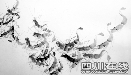 昨日下午,记者来到卫保贵生前的家中,一进门就看见一大幅卫老画的虾图,画中的虾通明剔透,跳脱自如,神韵毕现。