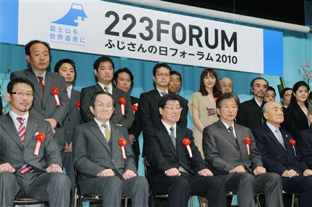 论坛上,为歌曲《富士山》作词作曲的作家新井满和来自静冈县的女星长泽雅美进行了对话。新井满说:“从东京塔眺望富士山的时候,不由觉得心胸顿然开阔。”长泽雅美说:“离开父母到东京去上中学的时候,可以从校舍的窗户望到富士山。那时候仿佛觉得富士山就在默默地为我加油。”
