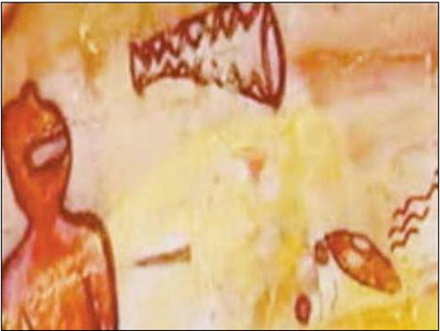 “今日新闻”援引外媒报道称,多名科学家日前发现,在印度中央邦偏远地区的山洞墙壁上,竟然画了一个穿着贴身航空服的外星生命,以及一个类似UFO的碟状飞行物体,而在外星人与飞碟之间,还画有一个螺旋状的物体,就像电影《星际终结者ID4》中,外星人到达地球表面的通道。