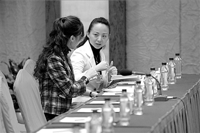 因在春晚领舞《千手观音》而被百姓喜爱的聋哑委员邰丽华,每天都是第一个出现在政协文艺组小组讨论会上。昨天下午2点40分,她和手语翻译李琳刚一步入会场,就开始认真地准备素材。她坦言,开会来得早是自身的习惯,无论什么活动她都会提前到位。