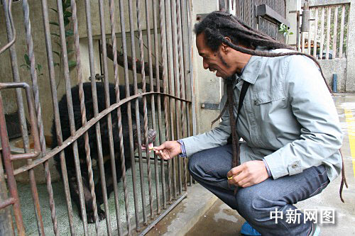 中新网成都3月11日电(周迪迪)英国著名饶舌诗人本杰明•泽凡尼作为一位动物爱好者,近日,他来到四川龙桥黑熊救护中心看望受伤的黑熊,并现场表演了一首他精心创作的饶舌诗歌,呼吁大众关爱动物、拯救黑熊。
