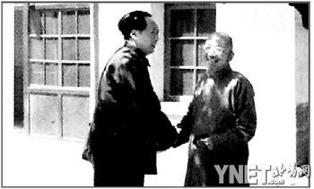 在展厅里展出了一张毛泽东和柳亚子在双清别墅院子里的合影,照片中毛泽东亲切地握着柳亚子的手。