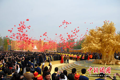 大典现场,来自郑州、香港、澳门、台湾的儿童代表,放飞代表希望、和平的白鸽和气球。
