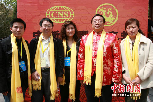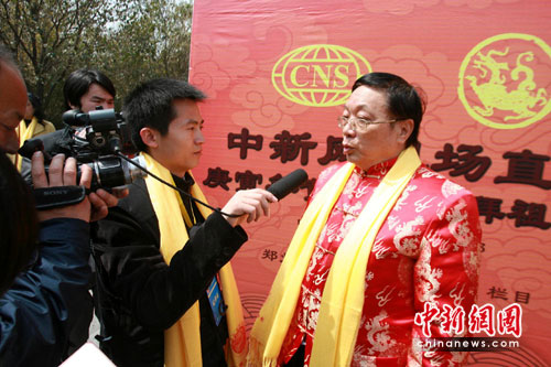 中新网郑州4月16日电(记者 王中举)4月16日,庚寅年黄帝故里拜祖大典将在河南新郑黄帝故里举行。中国国民党荣誉主席吴伯雄因故不能前来,特委托中华国际观光协会理事长刘宗明先生代表其前来参加拜祖大典。图为刘宗明在接受中新社、中新网记者独家专访,并和中新社、中新网领导及记者合影留念。