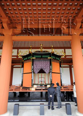 中新网4月16日电 据日本共同社报道,作为主会场的奈良市平城宫遗址内,绘有壁画的大极殿内部等主要设施16日向媒体公开。“平城迁都1300周年纪念活动”本月下旬即将拉开帷幕。