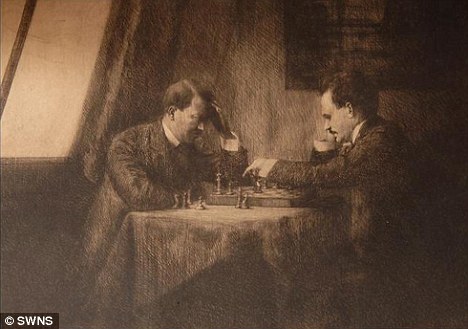 据《每日邮报》4月14日报道,一张在1909年创作的希特勒与列宁下棋的素描画15日将在英国一家拍卖行进行拍卖,专家预计拍卖价为4万英镑。这个宽50.8厘米,高38.1厘米的素描画,据考证也是唯一一幅同时有希特勒和列宁亲笔签名的画作。