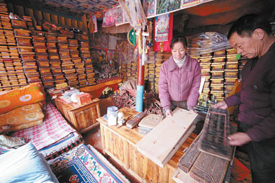 东仓家的上一代家长是一个眼睛失明的喇嘛。他先焚香沐浴,然后占卜了几次,在几个候选的年轻人中,次成文青总是最优秀的。于是,他按照传统,把女儿和经书托付给次成文青。当时,这个青年后生承诺了两件事,一件是照顾好妻子,另一件是保护好经书。