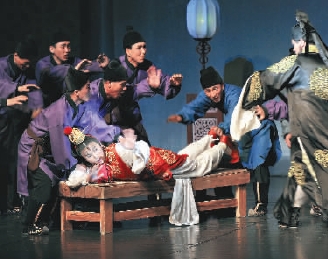 此外,朝鲜演员的衣着打扮、动作台步,都与中国87版电视剧《红楼梦》非常相似,舞台布景、亭台楼阁、案几床凳也尽搬中国模式。原来,朝版《红楼梦》的戏服和一些小道具,都是中国艺术工作者赠送的。