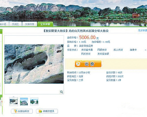 据记者了解,淘宝网所拍卖的龙虎山9号洞穴,系丹霞地貌所形成的天然洞穴,起拍价从1元起,拍卖价格也和一般的拍卖有很大不同:起拍价一元,竞拍者加价幅度也仅需一元。因此,在该拍卖活动举行之初,便得到了广大网民的热烈响应,短短数天,“龙虎山9号洞”已经拍到了上万元的高价。