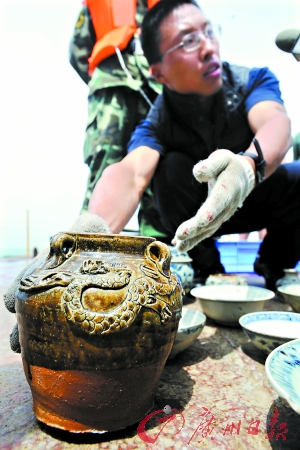 之前,有关方面曾预测“南澳Ⅰ号”文物将达上万件。孙键则表示,具体数量至少要等到船体大致现出真身后才好预测,但现在能观测到的情况是,“南澳Ⅰ号”古船所载货量是很大的,并且从花纹和胎质鉴别,其中的景德镇出品瓷器应该比漳州瓷器少一点。