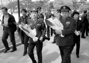 毛岸英烈士的妻子刘松林和女儿杨密缓慢地行进在墓群中,向烈士墓一一鲜花鞠躬。刘松林的眼泪一直洒个不停。“我去过朝鲜扫墓,也来过沈阳烈士陵园,但是每次来心情都特别难过。这些烈士都是母亲的儿子、妻子的丈夫、孩子的父亲,却为国家的安危献出了年轻的生命,后人是要永远缅怀他们的。”刘松林在朝鲜跪拜了两位烈士,一位是毛岸英,一位是邱少云,“他们为国捐躯的精神值得我敬佩,尤其是邱少云烈士烈火焚身一动不动,那是需要有超人的毅力的,我由衷地敬佩他。在他们面前,我真地有一种冲动,我没有资格站着纪念他们,只有跪拜才足以表达敬仰之心。”刘松林时常写些随笔,唯独写到这段时搁了笔,泪水难以抑制,“不过我还是要坚强地写下来,教育我们的后辈,不要忘记烈士,我们今天的幸福生活都是他们用鲜血换来的。我告诉孩子们,做人要正直,办事要拍良心,要无愧于祖国和人民。”